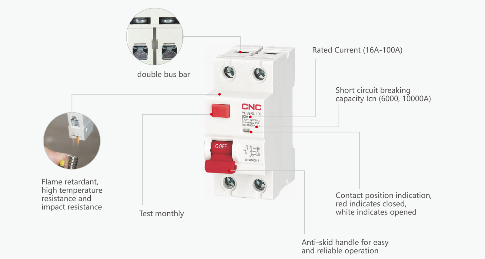 A | For residual sinusoidal alternating currents and residual pulsating direct currents | 100mA | For providing protection against indirect contacts |